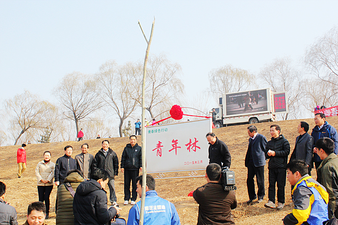 上午9時,段店管理段黃河畔彩旗飄揚,人頭攢動,槐蔭區(qū)委書記李繼民等領(lǐng)導(dǎo)一行出席“青年林”揭牌儀式,并種下了綠色行動的第一棵樹!