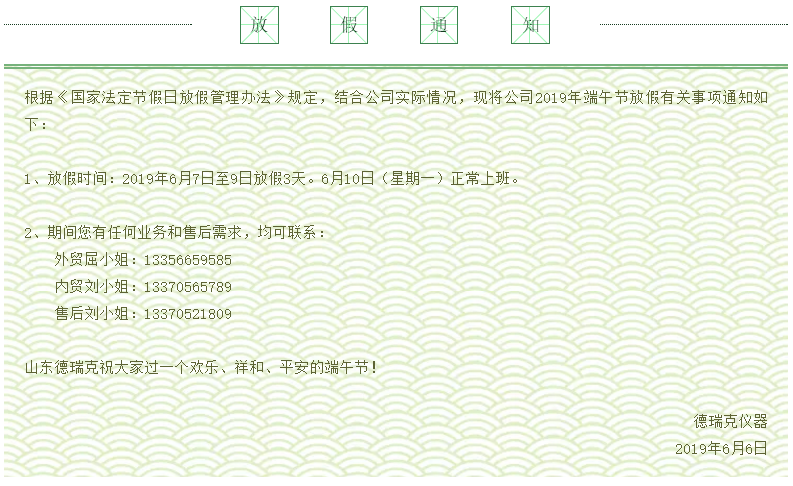 放假通知 ‖ 山東德瑞克祝大家過一個快樂、祥和、平安的端午節(jié)!